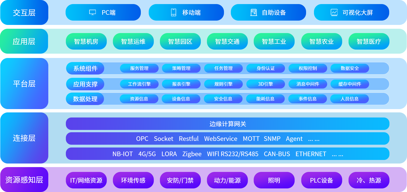 支持各類常見(jiàn)主流聯(lián)網(wǎng)方式,支持主流物聯(lián)網(wǎng)協(xié)議,支持私有協(xié)議定制開(kāi)發(fā)。支持設(shè)備直連、網(wǎng)關(guān)接入、云端對(duì)接,支持第三方物聯(lián)平臺(tái)接入。